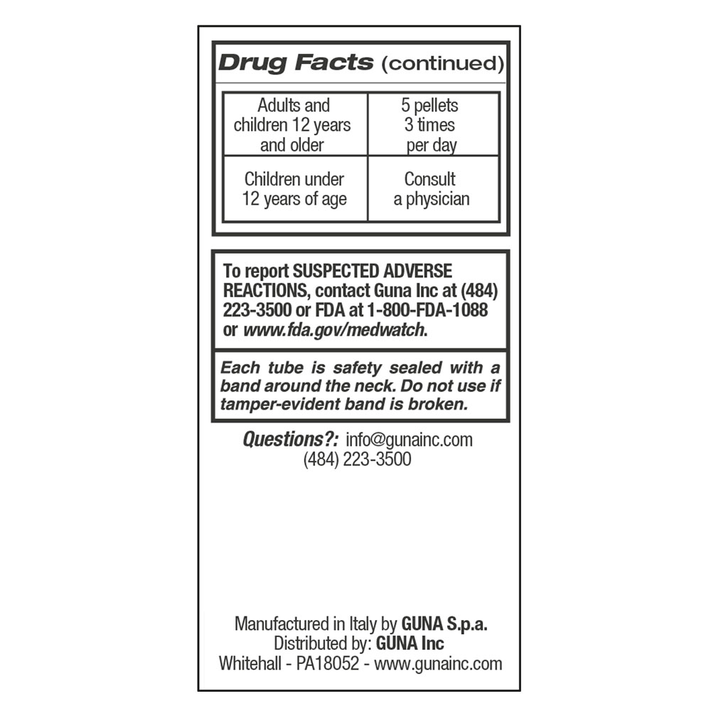 Directions (Pellets) | Adults and children over 12 years: 5 pellets, 3 times per day. |